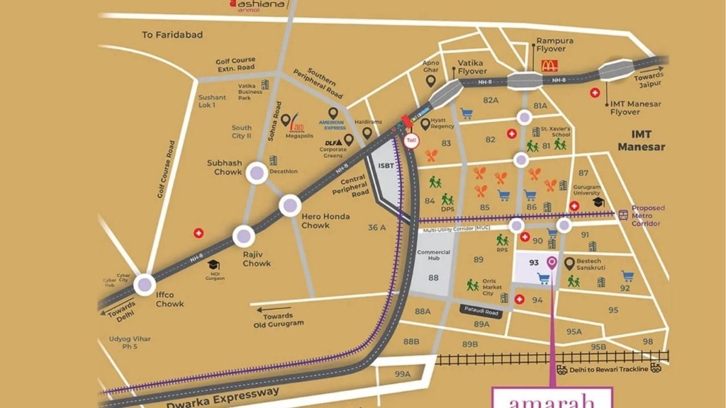 Prime Location: Located in Sector 93, New Gurgaon, Amarah enjoys excellent connectivity to schools, hospitals, and business hubs.