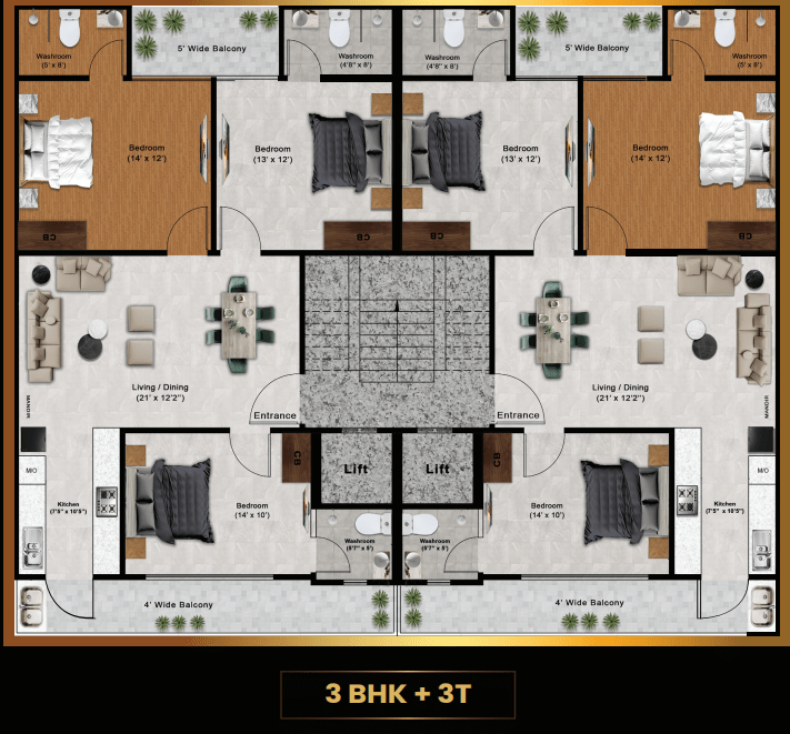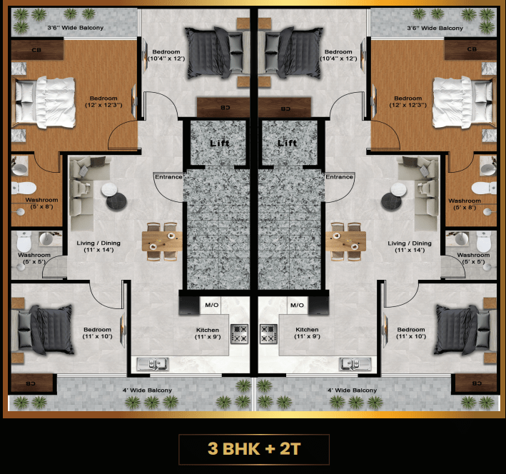 • 3 BHK – 1,242 sq.ft / 1,503 sq.ft