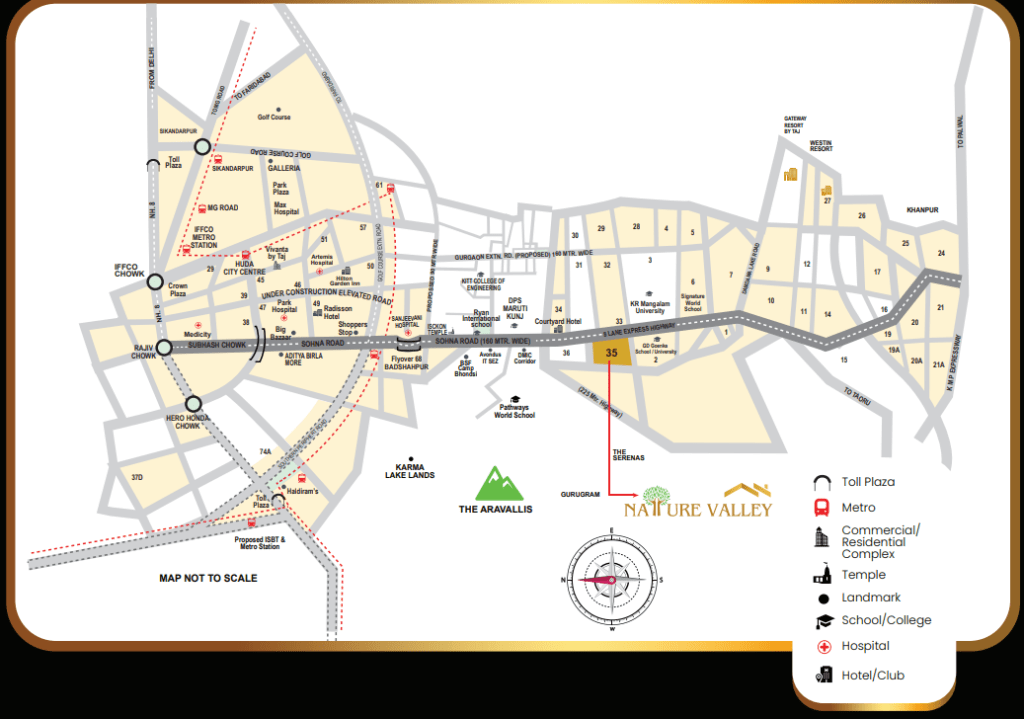 Nature Valley by BLF Developers is a landmark residential project located in Sector 35, South of Gurugram (Sohna), perfectly positioned between the Delhi-Mumbai Expressway and the scenic Aravalli Hills. This community delivers a unique lifestyle that combines urban convenience, strong connectivity, and a serene natural environment – ideal for families, professionals, and investors seeking high-quality living with nature at its doorstep.