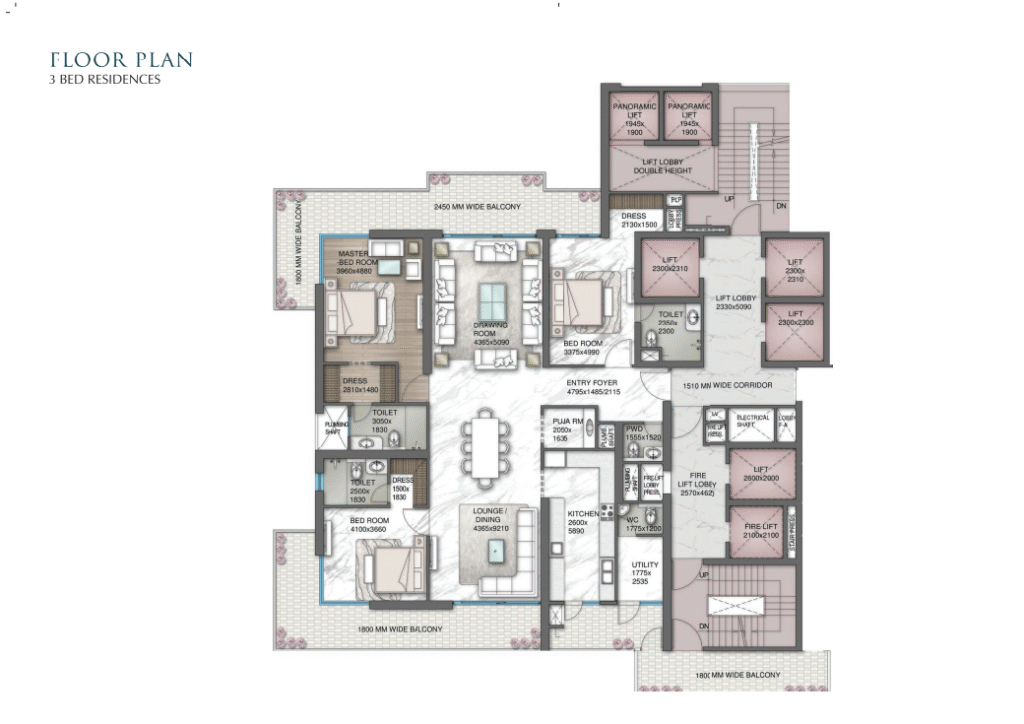 The project offers diverse residential options to cater to various preferences. From well-appointed 3 BHK, and 4 BHK apartments, each unit is designed to exude elegance and comfort. The interiors boast premium finishes, intelligent space utilization, and modern amenities that enhance the overall living experience.
